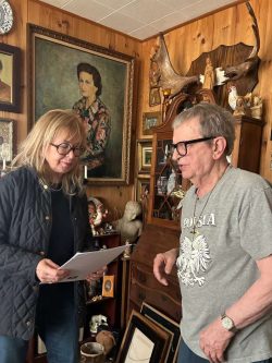 Następnym punktem programu były odwiedziny w Stevens Point (stan Wisconsin) gdzie mieszka Edward Dusza, laureat Nagrody Literackiej ZPPnO 2025 r. Pochodzący z Krakowa poeta, wydawca, dziennikarz i y działacz społeczny mieszka w USA od 1969, a od kilku dekad redaguje najstarsze pismo Polonii Amerykańskiej, „Gwiazdę Polarną”. Zdobywca ubiegłorocznej nagrody oprowadził po swoim domu, który przypomina muzeum – to arcybogatą kolekcją polonijnych artefaktów. Regina Wasiak-Taylor jako prezes Związku pełni funkcję przewodniczącej jury Nagrody Literackiej. Wręczyła Edwardowi Duszy dyplom o przyznaniu tego wyróżnienia, przyznawanego przez ZPPnO od 1951 roku. Jeszcze raz gratulujemy laureatowi i życzymy dalszych sukcesów litrackich.